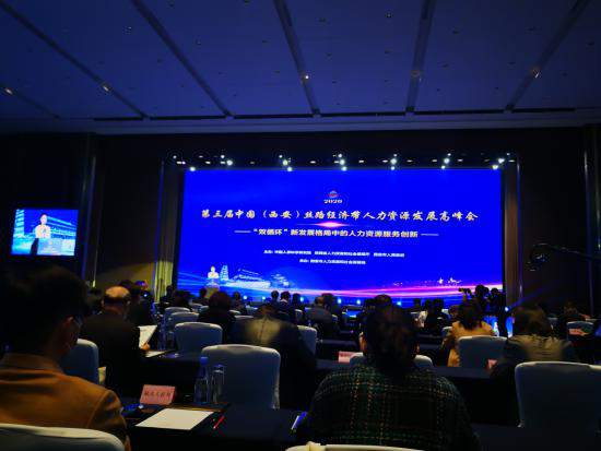2020年11月13日,我公司趙文勝董事長和鄭淼經(jīng)理參加了第三屆中國(西安)絲路經(jīng)濟帶“雙循環(huán)”新發(fā)展格局中人力資源服務(wù)創(chuàng)新發(fā)展高峰會。會議由國家人社部中國人事科學研究院、陜西省人社廳、西安市人民政府共同主辦,西安市人力資源和社會保障局承辦。大會以“齊聚新思路、構(gòu)建新格局、共謀新發(fā)展”為主題,共同探討“雙循環(huán)”新發(fā)展中人力資源的服務(wù)業(yè)發(fā)展創(chuàng)新之路,面臨的機遇和挑戰(zhàn),進一步激發(fā)人力資源服務(wù)的創(chuàng)新活力,意為更好的發(fā)展。